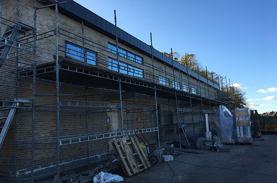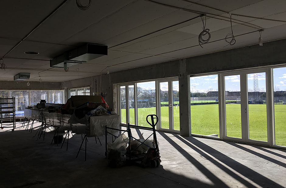 Den indvendige del af klubhuset er håndværkerne også godt i gang med, men her går der stadig nogle måneder, før de nye rammer står helt klar og kan tages i brug 1. april 2018.