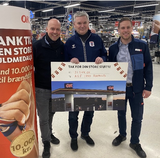 OK støtter over 2500 lokale klubber og foreninger i Danmark – heriblandt AGF 1880 - og senest har klubben modtaget en flot støtte på over 31.000 kroner til brug i AGF’s amatørafdeling. Ved at anvende OK's app i stedet for dit OK Kort, fordobles støtten per tankning.