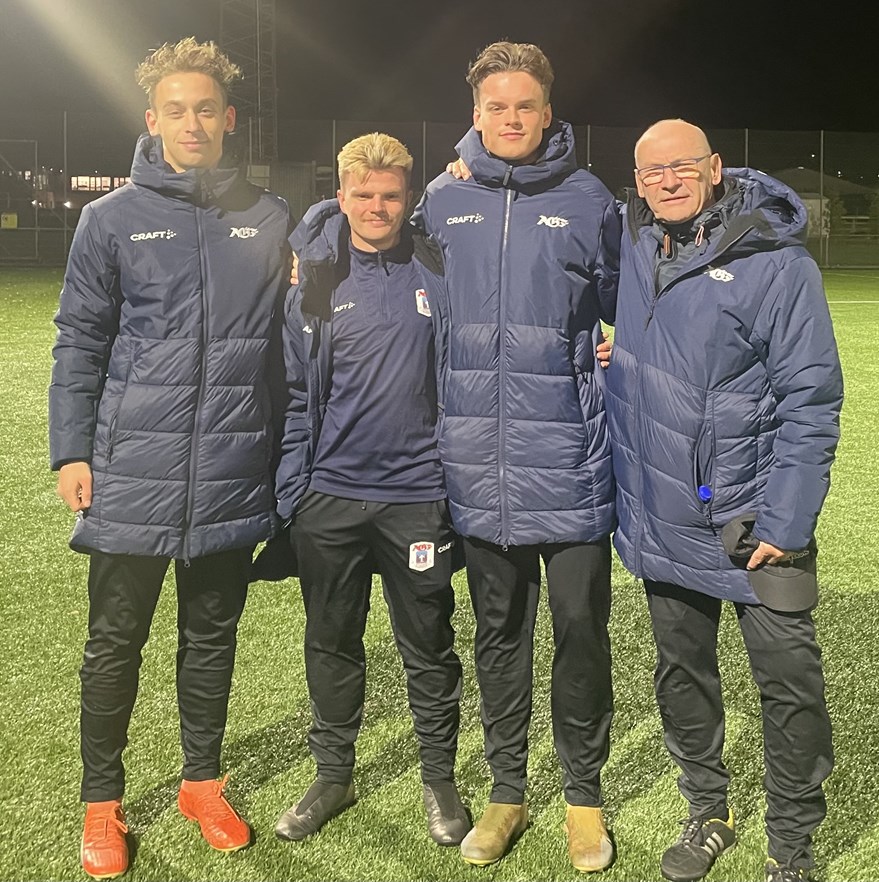 Foto: De fire, der har været trænere hos U14 i efteråret. Fra venstre Kasper Jørgensen, Alvin Angelo, Carl-Oscar Aspinall og Hans Petersen. (Privatfoto)